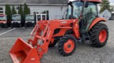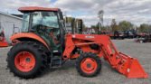 2016 Kubota M7060HDC 4×4 with Kubota LA1154 Front End Loader with Skid Steer Style Quick Attach Bucket and Third Function Hydraulics, Cab with Heat, Air, and Radio, 8-Speed Synchronized Transmission with Hydraulic Shuttle, 1XSCV, Like New 9.5-20 and 16.9-24 Tires, 540 PTO, and 1024 Hours. This tractor is in Great condition!